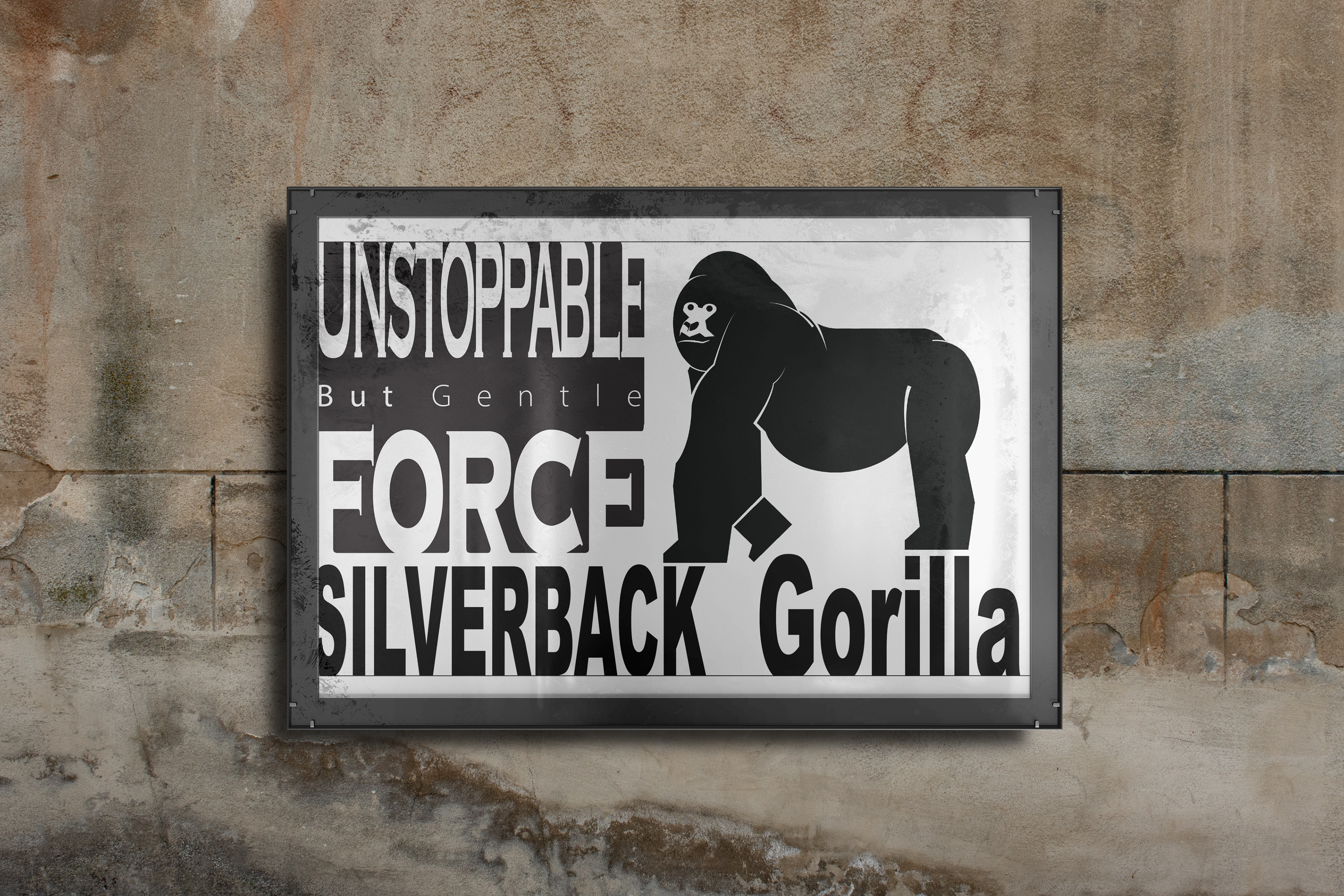 Then I created a phrase which represents the gorilla. I used typography elements to give the words characteristics, while also using shape, space and alignment to integrate it well with the existing gorilla creature mark.