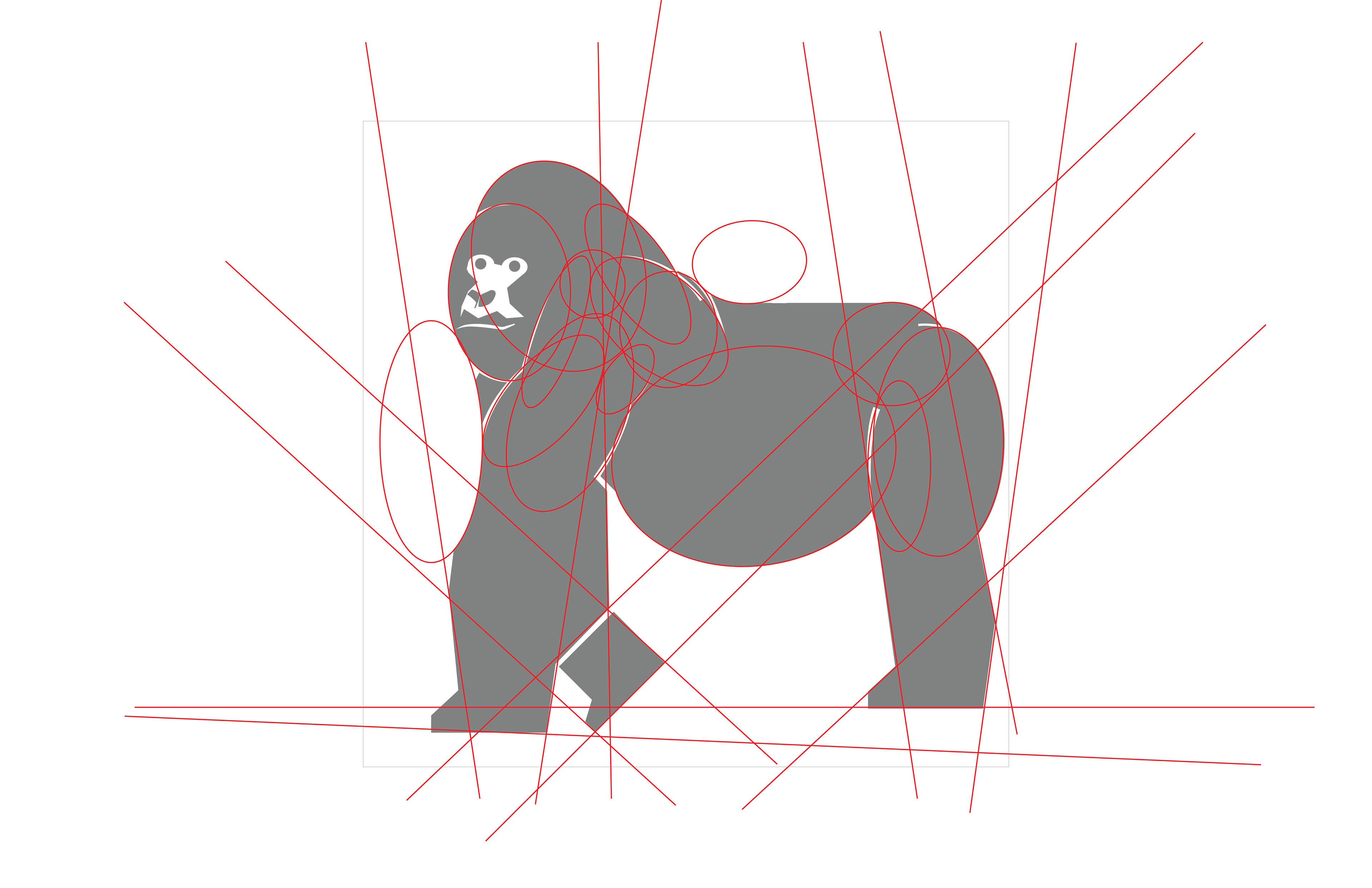 The gorilla without the lines looks like a singular shape, capturing the essence of the gorilla without unnecessary details.