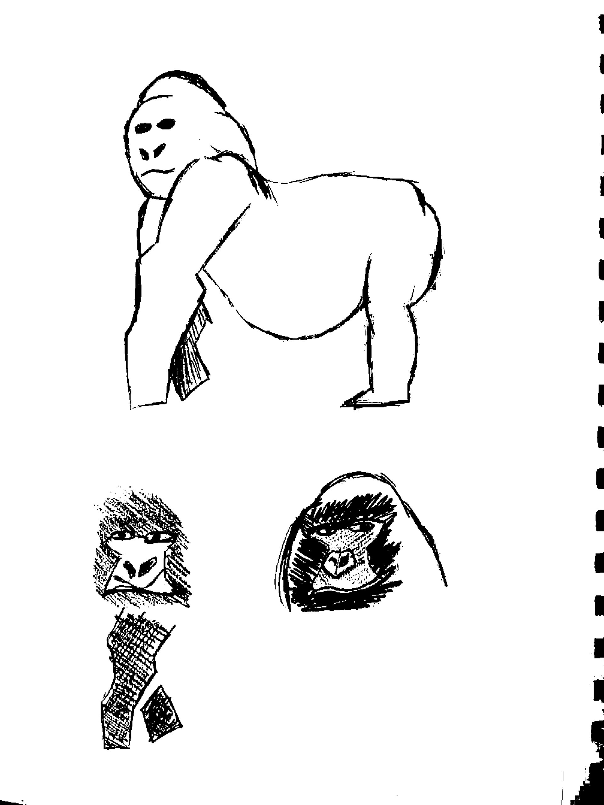 I replicated my sketches by using a series of circles and lines, along with combining multiple reference images of gorillas to try to simplify the gorilla as much as I could.